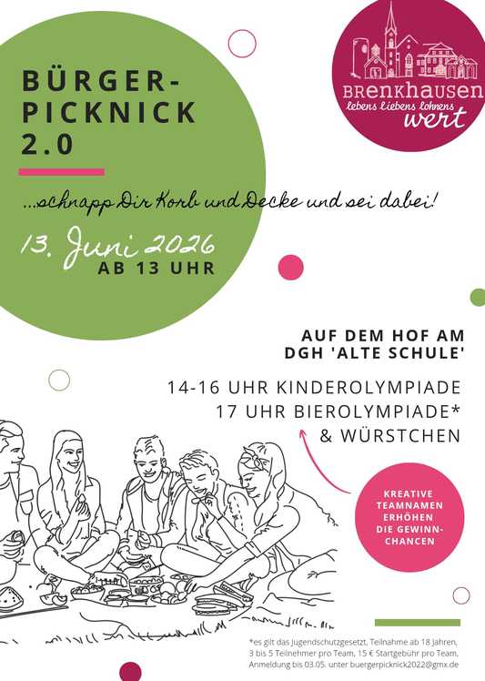 Bitte für die Bierolympiade anmelden über die E-Mail-Adresse: buergerpicknick2022@gmx.de . Dafür bitte den Teamnamen und die Personenanzahl angeben.